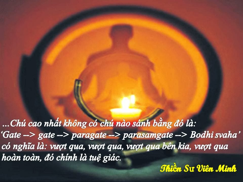 Vậy nếu cần phải tụng đi tụng lại một câu thần chú thì tốt nhát nên thường tự nhắc mình câu đại thần chú, đại minh chú, vô thượng chú, vô đẳng đẳng chú - cao tột vô song là "Xả ly --> ly tham --> đoạn diệt --> an tịnh --> chánh trí giác ngộ Niết-bàn" mới thật sự chân chính "năng trừ nhất thiết khổ ách" như Kinh Bát-nhã đã nói.